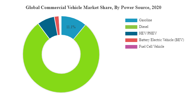 - Based on the power source level, the market is divided into gasoline, diesel, HEV/PHEV, Battery Electric Vehicles (BEV), and fuel cell vehicles.